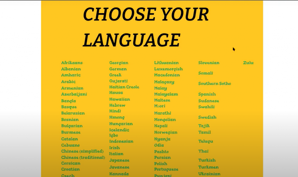 - Language: One feature that Justine is particularly proud of is the ability to translate her web app into any language. This is an idea that she personally thought through and decided to implement. Currently, she just created a page listing all the languages. She will further work on providing translations in the listed languages.