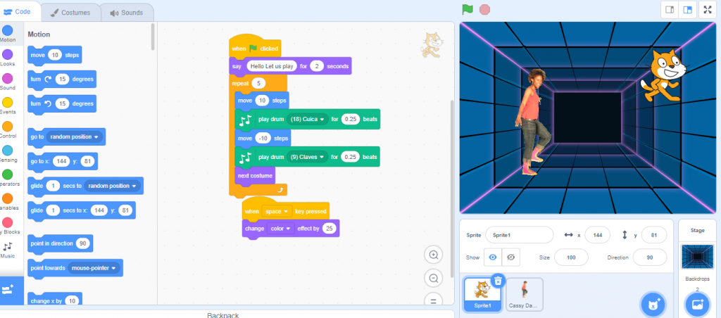 Scratch is a free programming language where children as young as six years old are able to develop their imagination by creating interactive stories, animations and games. Selwyn is a vibrant eight year old student. He is learning to tinker through Scratch Programming for the very first time. He is looking forward to creating his animations and games in Scratch.